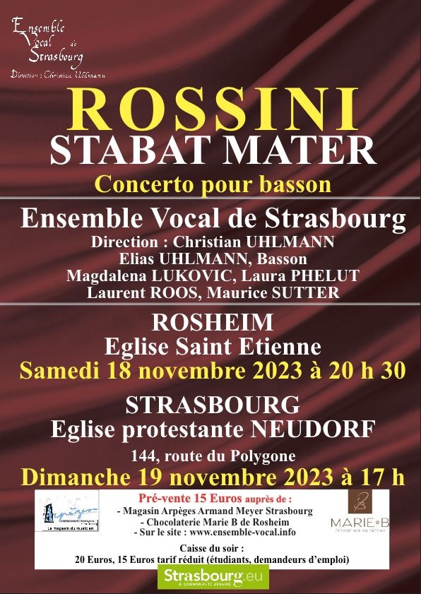 Nous relayons à nouveau et avec plaisir l’invitation, de notre collègue et choriste Daniel GREULICH, concernant les concerts donnés par l’Ensemble Vocale de Strasbourg à ROSHEIM et STRASBOURG NEUDORF.