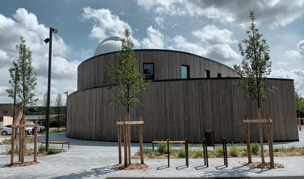 - d’un observatoire et son télescope (avec une lunette spéciale pour l’observation en plein jour) d’une ouverture d’un demi-mètre de diamètre pour observer les étoiles. Il peut accueillir 19 personnes et sera mis à disposition du Club d’Astronomie de la MJC de DOUAI, et du grand public, à l’occasion d’évènements ou de soirées à thème, comme la nuit des Etoiles, la fête de la science,