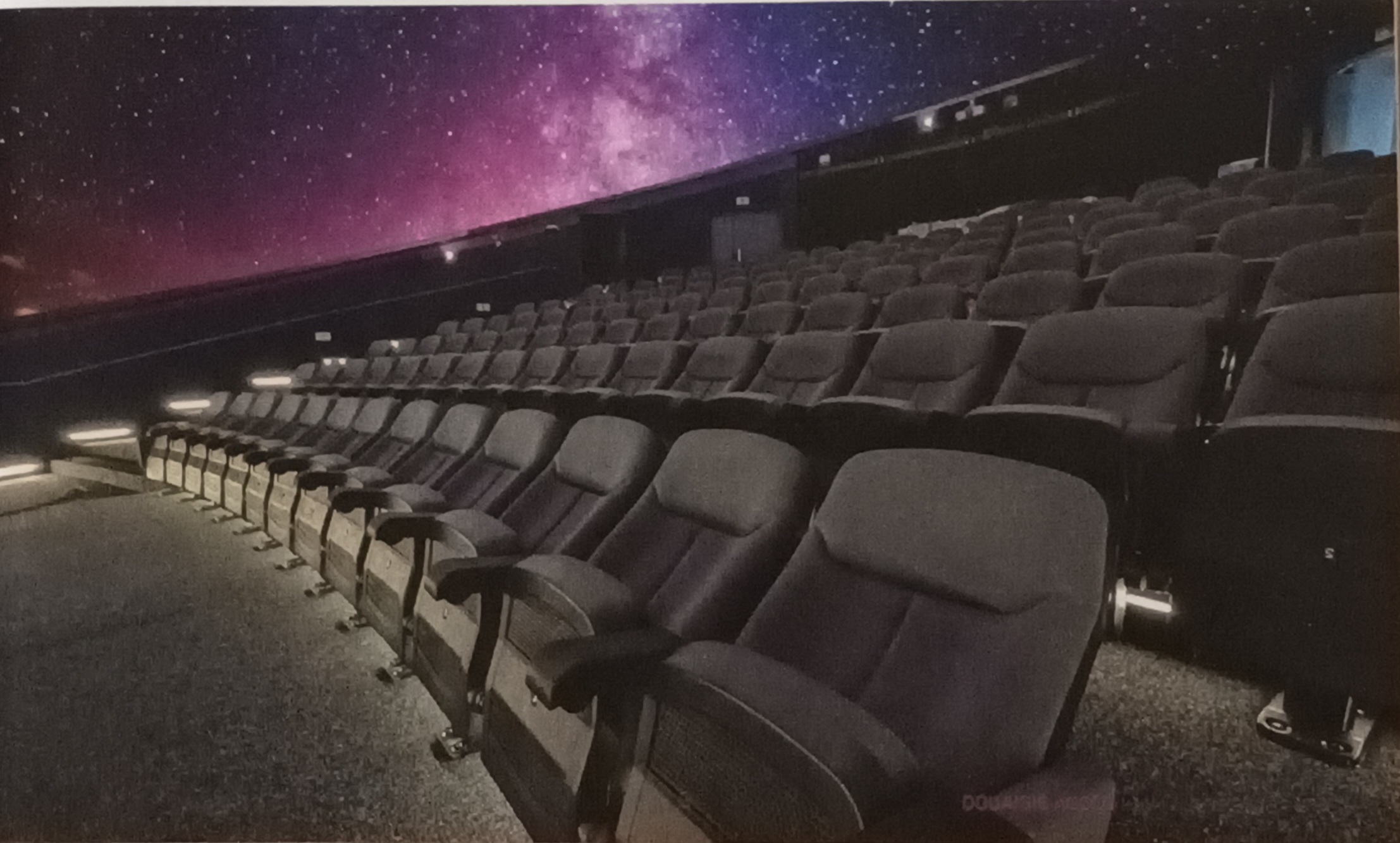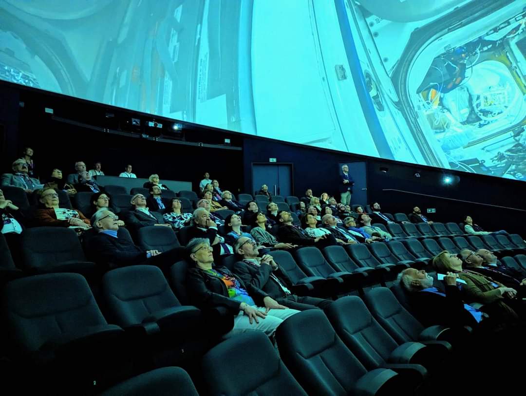 - d’un dôme écran renfermant une salle immersive pouvant accueillir 130 personnes assises. Dans une position inclinée et confortable, les visiteurs pourront observer des films diffusés sans porter de lunettes 3D grâce aux 12 vidéoprojecteurs lasers et 60 millions de pixels offrant une résolution d’image de 10 K sur 360°.