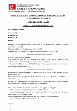 Rendez-vous annuel de notre fédération régionale, en introduction à cette Assemblée, la présentation de la ville de CALAIS nous est faite par Bruno DAMBRUNE.